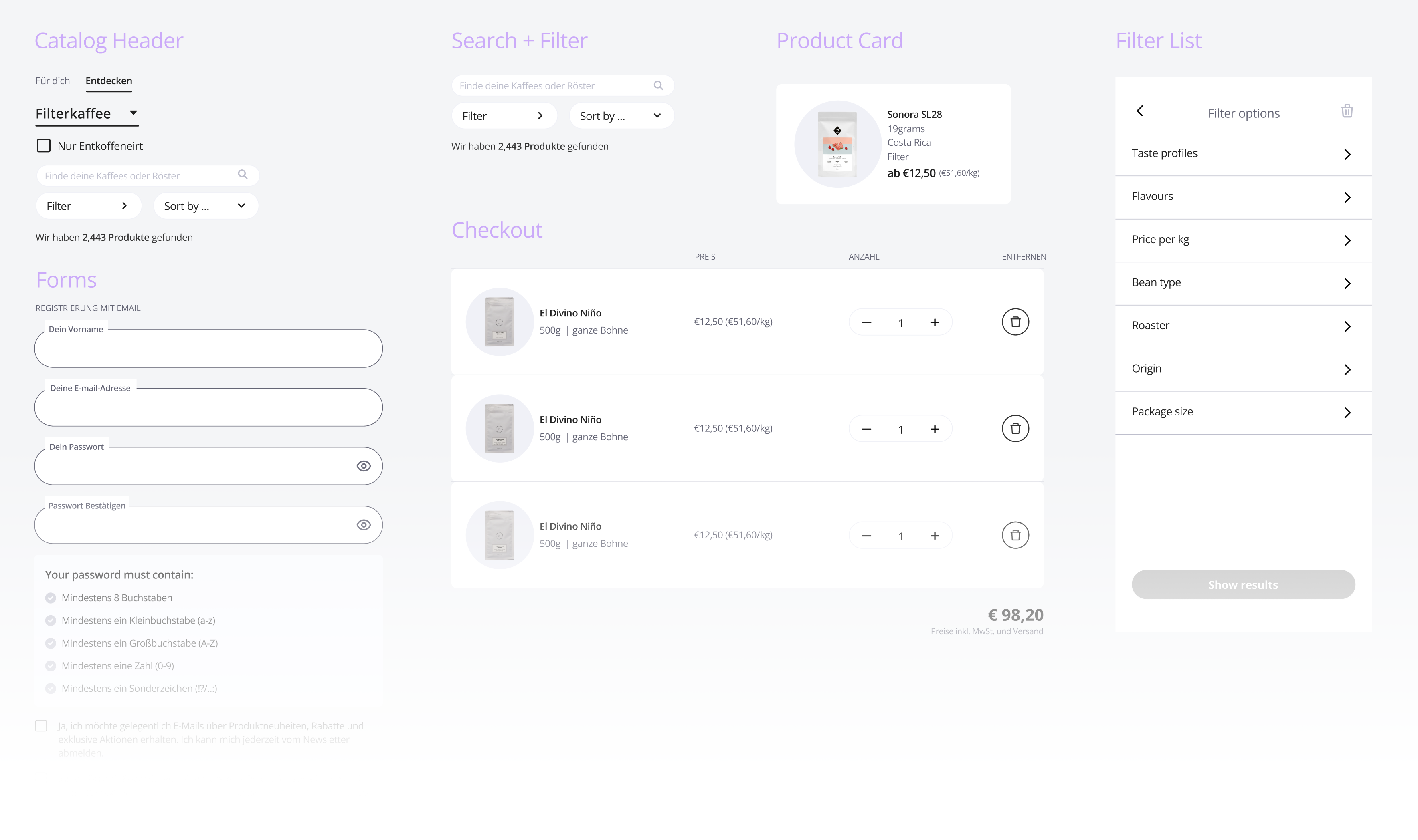 We began by focusing on typography, colors, and the grid system, which were largely influenced by the existing style guide.