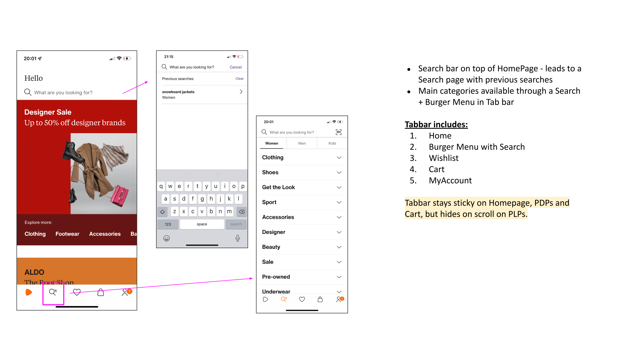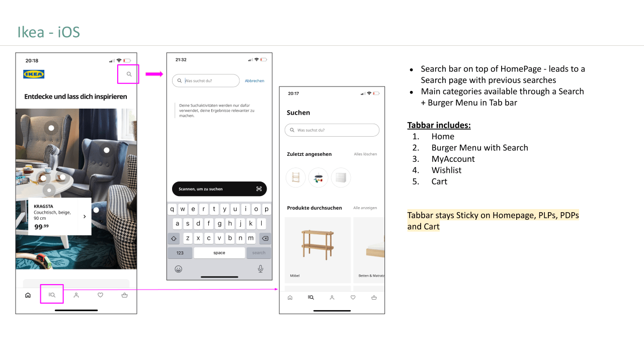 - The search bar was one of the most clicked elements, and most benchmarks showed a full search bar on the homepage, not just an icon.